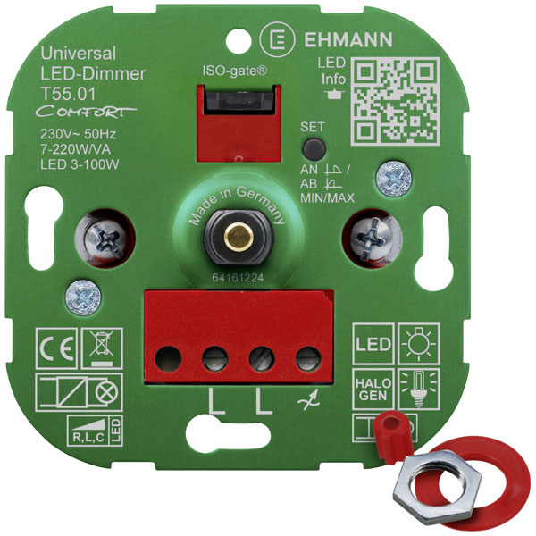 The Ehmann 5500x0100 rotary dimmer is a versatile device suitable for LED bulbs, halogen lamps, and light bulbs. Manufactured by Ehmann, it features a twilight switch and supports efficient light management. Typically used in residential and commercial settings, it allows precise control over lighting intensity.