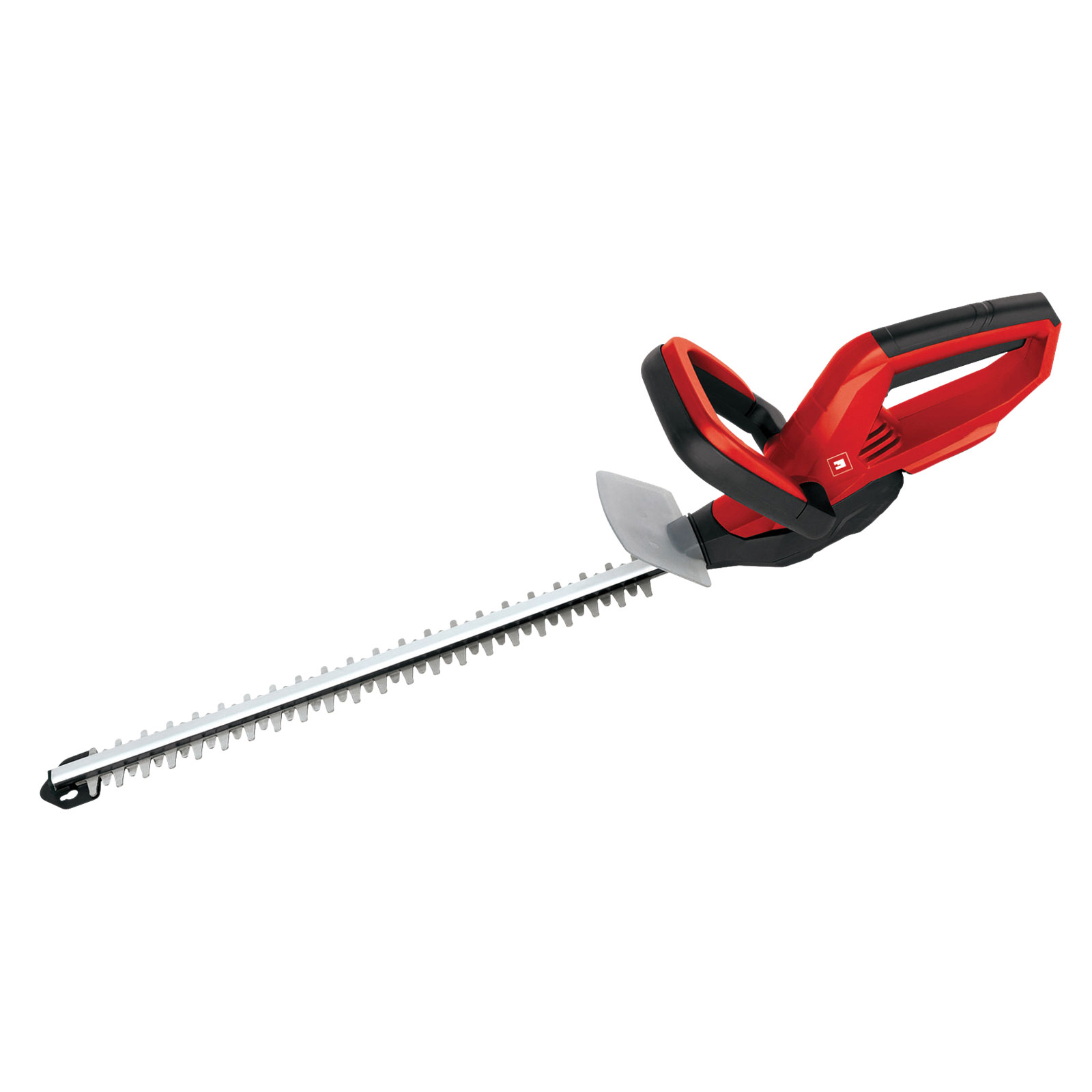 The Einhell GH-CH 18 Li Cordless Hedge Trimmer is a high-value, high-performance machine for use around the garden. With the new Power X-Change battery management system, the hedge trimmer is powered by a 1.5 Ah 18V rechargeable battery, which means no troublesome electric cable. Thanks to the practical ergonomic handle and the very low weight, comfortable working is guaranteed. Built for safety, it has a two hand safety switch which stops the electric cutters in less than 1 second. The counter rotating double bladed safety cutters are made of laser-cut steel, it has metal gearing for a long life and an aluminium cover on the cutters. It has a bumper-guard with holder for wall hanging. Supplied with sturdy bag for storage and transportation. Suitable for Power X-Change battery system.