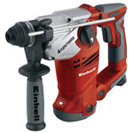 The Einhell RT-RH 26 rotary hammer with pneumatic hammer action is a high-quality and extremely versatile powerhouse for experts, which is indispensable on challenging building, renovation and chiseling jobs. This all-rounder is equipped with all four functions needed for universal use: hammer drilling, drilling, and chiseling with and without chisel lock. The SDS-Plus chuck enables drill bits and chisels to be changed without tools, and together with the powerful 900 W motor it develops an hammer force of 2.6 joules so that the tool leaves its mark on practically any tough assignment. The vibration-absorbing grip signals the optimum contact pressure by "Press-control" – an important feature for low-wear yet high-speed operation. For sensitive drilling when the hammer action is switched off there is an electronic control. The reversing facility is welcome on screwdriving jobs and also makes it easier to pull back out of drilled holes. High safety during operation is assured by an overload slip coupling which reacts immediately to any sudden jamming of the bit. A sturdy, adjustable drilling depth stop made of metal enables exact, repeat drilling depths. With an anti-twist lock and soft grip the additional handle enables safe, user-friendly handling. Tidiness is quickly restored by a cable clip for securing the wound-up cable. The RT-RH 26 is stored neatly and safely in a practical transport and storage case.