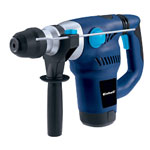 The Einhell BT-RH 1500 rotary hammer with pneumatic hammer action is a robust tool which provides very good service to DIY enthusiasts on drilling and chiseling jobs. This powerhouse is equipped with three functions for universal use: hammer drilling, drilling and chiseling. Its SDS-Plus chuck enables drill bits and chisels to be changed quickly without tools, and it converts the power of the 1500 W motor into a huge hammer force of 4 joules – enough to make practically every wall capitulate. The robust aluminium gear head of the BT-RH 1500 makes it a real endurance runner. A vibration-absorbing main handle and an additional handle ensure safe and user-friendly handling. A sturdy, adjustable drilling depth stop made of metal enables exact, repeat drilling depths. The machine comes complete with 3 drill bits, one pointed chisel and one flat chisel so that it can commence work immediately. The BT-RH 1500 is stored neatly and safely in a practical transport and storage case.