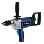 The Einhell BT-MX 1100 E paint and mortar mixer provides good service to DIY enthusiasts on mixing jobs involving liquid and powdery building materials. Thanks to a scroll chuck and reversing facility, the tool can also be used as a power drill. The gear unit in a robust metal housing is designed for a long service life. Thanks to its two additional handles and soft grip, the BT-MX 1100 E is comfortable to handle. Gentle starting of the stirrer is assured by the soft start feature, while the integrated electronic controls enable the speed to be preselected and precisely adjusted. For user-friendly continuous operation the tool comes with a stand mount (ø 43 mm) on the gear neck and with a lockable ON switch. The housing surface is "soft-painted" to provide a particularly good grip. Complete with one spiral stirrer (Ø 58 mm) and a stirrer changing tool so that work can commence immediately.
