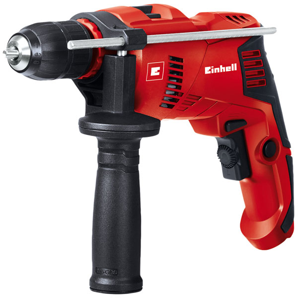 The Einhell TE-ID 500 E Impact Drill is suitable for jobs in and around the home, user-friendly thanks to its high-quality quick-change drill chuck. The infinitely adjustable drilling depth stop made of metal enables repeat drilling depths. Equipped with ergonomic soft grips for particularly comfortable operation. Its additional handle comes with ribs for secure fastening.