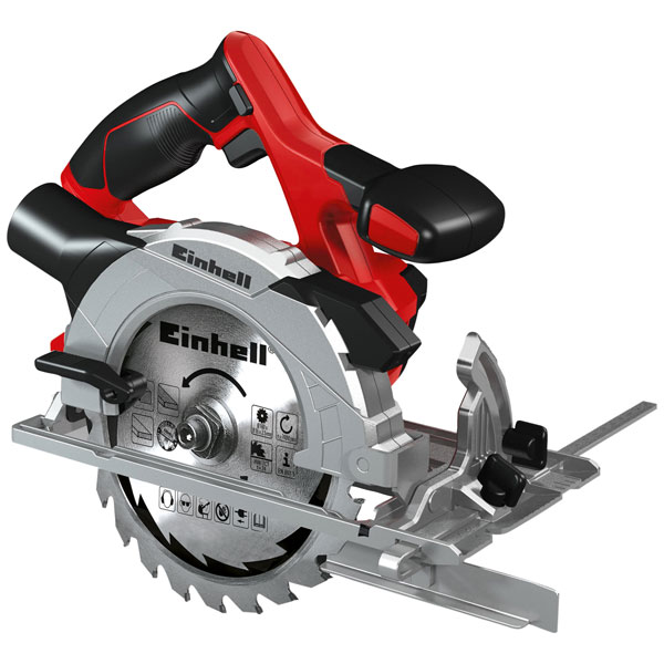 The Einhell TE-CS 165 Circular Saw is a high quality compact and powerful saw. The sawing depth and tilt angle can be adjusted without tools. It is fitted with a sturdy aluminium soleplate, providing excellent sliding properties, which enables precise guidance while cutting. The large soft-grip handle provides increased user comfort.