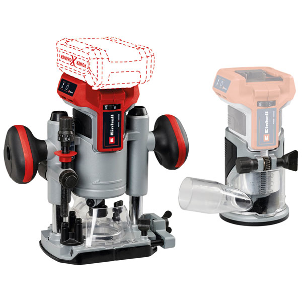 The Einhell TP-RO 18 Set Li BL-Solo Power X-Change Router/Palm Router is powered by the Einhell PurePOWER brushless motor. This brushless motor offers more power and a longer running time than conventional carbon brush motors. After registering online, the brushless motor comes with a 10-year warranty. Together with a powerful motor, the variable speed control electronics can be perfectly adapted to any task in soft or hard wood.