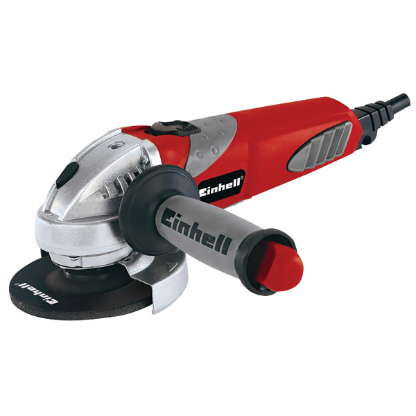 The Einhell RT AG 115 angle grinder is a high-quality tool for experts with exacting demands, whose strong points are demonstrated to the full on a broad spectrum of cutting, grinding and roughing jobs everywhere in the home, workshop and garage. Its disk guard with no-tool quick-adjust facility can be adapted with just a twist of the hand to any task, while the spindle stop permits easy and speedy tool change. The RT-AG 115 is equipped with a long-lasting, robust metal gear head which ensures optimum power transmission and low-vibration running. With its soft grip and an additional handle which can be secured in three different positions, the handy and compact angle grinder provides optimum user-friendliness and therefore permits safe and speedy operation. The flange nut wrench is stored in the additional handle so that it is always within reach. A cable clip for securing the wound-up cable keeps the RT-AG 115 neat and safe when stored away.