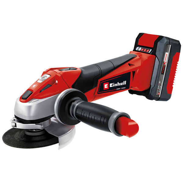 The Einhell TE-AG 18 Li Power X-Change Angle Grinder is a very handy, compact tool and is the lightest angle grinder of its class. It has a robust, aluminium gear housing and a very smooth operation thanks to the separation of motor and gearing.