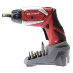 The Einhell RT-SD 3.6/1 Li cordless screwdriver is an extremely practical and versatile tool for ambitious DIY enthusiasts which should not be missing in any household. Its lithium ion battery offers 30% more capacity for prolonged running. Thanks to a pivot joint, the tool is converted with a twist of the hand from a pistol screwdriver to a straight screwdriver, which also enables easy and quick screwdriving even in places which are difficult to access. The RT-SD 3.6/1 Li has a variable torque with seven settings. Precise dosing of the power by transmission via a robust metal gearing with reversing facility is thus assured for every screwdriving task. A bit lock enables the bits to be safely secured and quickly replaced. A magnetic screw holder acts as your third hand. The soft grip permits safe and user-friendly handling. A bright twin LED lamp brings light to every working position. Thanks to a 3-step LED battery indicator and charging indicator light you can see at a glance how high the battery is charged. Among the accessories is a charging station and a bit depot with 7 standard bits and 2 extra-long bits, enabling the cordless screwdriver to be put to immediate use.