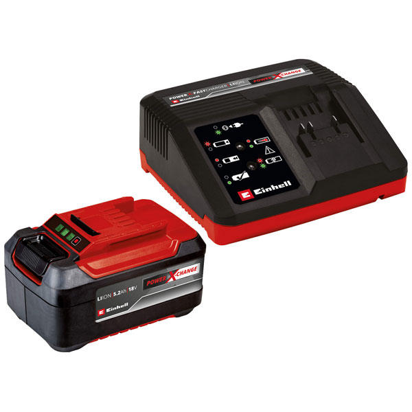 1 x Power X-Fastcharger 4A. Charges all batteries from the Einhell Power X-Change system. 4 amp fast-charging technology ensures shorter charging times. For optimum charging and maximum safety, the battery is permanently monitored by an intelligent charging management system. There is a refresh mode for reactivating exhaustively discharged batteries. All up-to-the-moment information is provided by the 6-stage charging level LED indicator. The body features integrated suspension eyelets to easily hang on the wall.