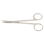 Stainless steel dissecting scissors with fine curved points and closed shanks.