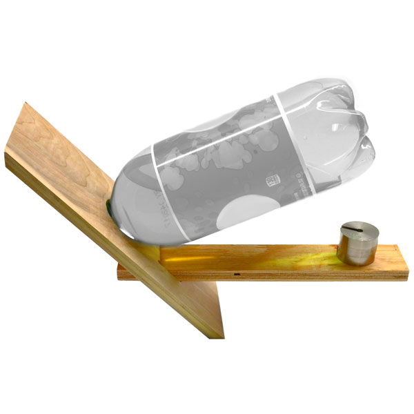 Eisco GP00008 Garage Physics Soda Center of Mass Kit - The Soda Centre of Mass Kit is a fun way to explore physical concepts surrounding balance, stability, and center of mass. This kit is designed to be accessible to small children but have sufficient depth to engage high-school students. It allows students of all ages to explore and visualize center of mass in dramatic fashion by balancing a full, two litre bottle cantilevered at an angle with only indirect support.