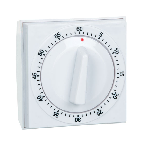 A simple and economical timer that measures one minute intervals up to one hour. After setting the desired time interval, a signal indicates the end of the time period.