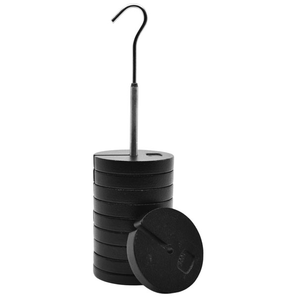 EISCO PHZNW1000SET 10 Piece Slotted Mass Set, 1000g, Zinc Casted 10 piece set includes 9 x 100g weights and 1 x 100g hanger. Weights are made of high quality, powder coated, die cast zinc. Made to last with ±2% accuracy and includes hanger for easy use and transportation.