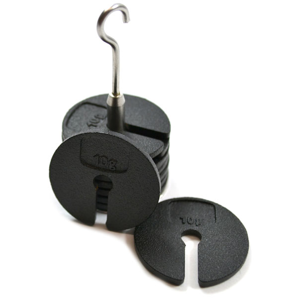EISCO PHZNW100SET Slotted Masses Set- Zinc Casted, Set of 9 weights Die casted zinc, 9 piece slotted masses set on a durable hanger. Each weight is 10g and has been powder coated with ±2% accuracy.