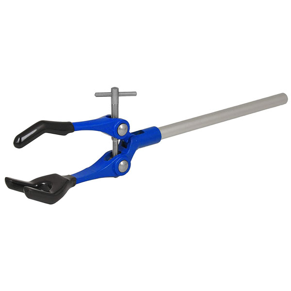 EISCO PRCMP01 3 Finger, Extension Clamp on SS Rod, Industrial Laboratory Grade is ideal uses for beakers, Erlenmeyer flasks, test-tubes, boiling (Florence) flasks and burettes. The clamp features a solid Zinc die cast construction with high grade, nontoxic powder coating.