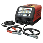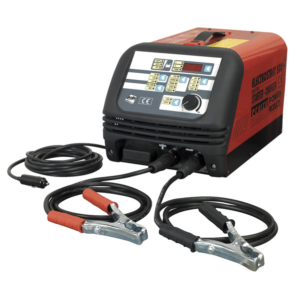 Fully electronic, microprocessor controlled battery starter/charger designed to meet the requirements of modern battery technology. � Powerful and �intelligent� charging and boost starting from heavy-duty transformers. � Suitable for Gel, Lead Acid, Lead Calcium, Ni-Cad and Silver Calcium batteries.� Instant visual check of battery condition, charge current, voltage and charging rate on LED read-out.� Instant control of power delivery prevents polarity reversal by cutting output power - no fuses to blow and no trips to reset. � Stabilised charging current allows improved charging efficiency and reduced charging times using Intellicharge circuitry. � Fitted with standby feature - provides stabilised power to vehicle�s electronic circuits through accessory socket enabling battery to be disconnected.� Includes circuitry to provide surge and spike protection during charging and starting thus preventing damage to vital systems such as ABS, airbag sensors, ignition and music systems.� Turbo-Fan cooled, heavy-duty transformer. Suitable for a wide range of vehicles - depending on model selected.� Wipe-clean touch-sensitive control panel.