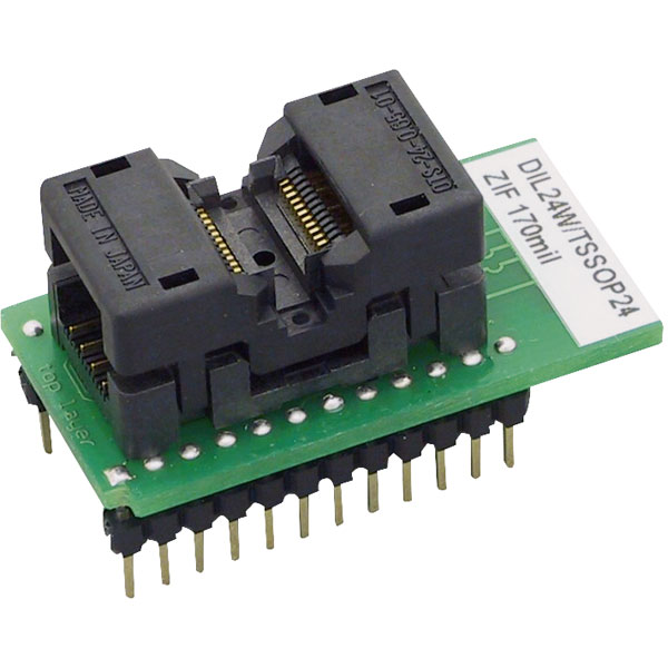 A programming adaptor for use with Elnec memory and IC devices. Suitable for DIL24W/TSSOP24 ZIF 170 mil.