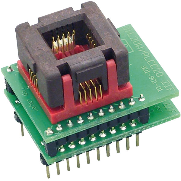 A programming adaptor for use with Elnec memory and IC devices. Suitable for DIL20W/PLCC20 ZIF.