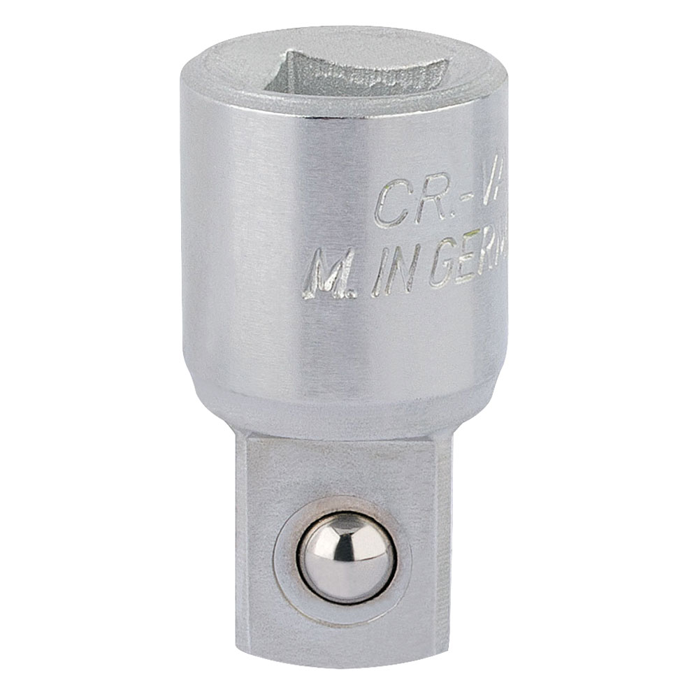 Professional quality ⅜ in x ½in female to male Elora socket converter, manufactured from chrome vanadium steel hardened, tempered and chrome plated for corrosion protection. Enables different sized accessories to be used with different sized square drive sockets.