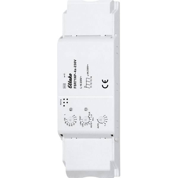 The Eltako wireless actuator FSR71NP-4x-230V is a 4-channel surface-mount device with a maximum switching capacity of 1000 watts. It has a range of up to 30 metres in an open field. Typically used for remote switching applications, it serves as an impulse switch and surge relay.