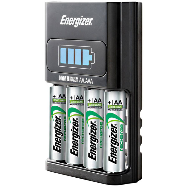 The Energizer charger, if you have to go fast: This 1-hour battery charger does its name a lot of credit and fully charges batteries in no more than one hour*. Through the individual charging channels the device can be used flexibly for 1 to 4 AA or AAA NiMH batteries simultaneously. The intuitive LED charging display shows the charging status of your batteries in real time. Your batteries are protected from overcharging and overheating: The Delta-V cut-off stops charging once the batteries are fully charged, so you don't have to worry about damaging your batteries or wasting energy. This charger is Ideal for frequently used devices, which are always in use, like digital cameras, baby phones, game pads, wireless computer mice etc. Maximise battery performance with the fast and powerful charging of Energizer. The world's No. 1 among the brands of rechargeable batteries (according to market analysis data).