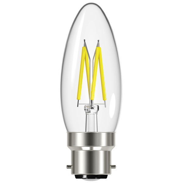 These Clear Finish Energizer® LED Candle Bulbs have a decorative filament making them ideal for decorative fittings. They replicate traditional halogen bulbs in appearance and output, whilst offering an 85% energy saving versus their halogen equivalent. The bulbs are a true retro fit design, provide instant, flicker-free light and have an average rated life of 15,000 hours.