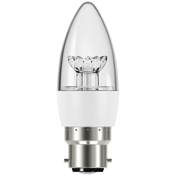 Energizer® S8854 LED BC (B22) Clear Candle Dimmable Bulb, Warm White 470 lm 5.9W