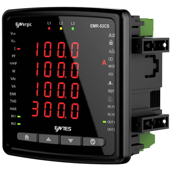 Entes manufactures the EMR-07S digital rack-mount meter featuring voltage, amperage, and current displays. This panel meter is ideal for monitoring electrical parameters in industrial settings. The unit's primary application is to provide real-time data to optimise energy management systems.