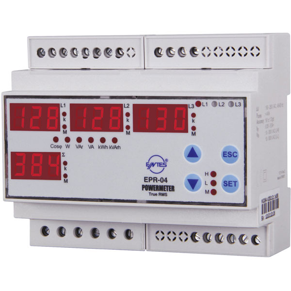 The ENTES EPR-04-DIN is a DIN Rail Mount Digital Panel Meter Power and Energy Meter from the EPR-04 Series. This microprocessor based device was developed for measuring the power and energy values in an Electrical Network.