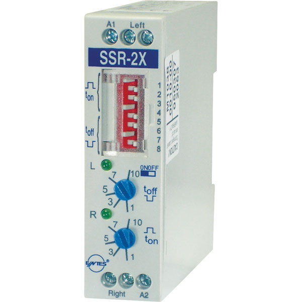 Left-right device is used to inverse rotating direction of 2 ways rotating machine used in industry. This device with time adjustment, repeats its functions according to specified periods.