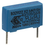 An X2 class 0.22µF EMI suppression capacitor with an MKP dielectric in an epoxy resin sealed plastic case. This capacitor is suitable for 'Across the line' applications and for use in power meters, ECUs, sensors, etc.
