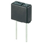 Rectangular time delay pico fuse from ESKA with radial connections for mounting upright.
