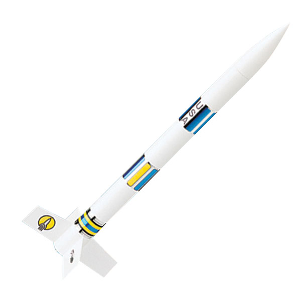 This Generic E2X - easy to assemble - rocket from Estes gives your students the chance to demonstrate their artistic flair. This rocket can be individually customised with the self-stick foil decals, decorated with markers or painted. Alternatively you can just leave it gleaming white. This rocket has an easy-to-assemble plastic fin unit/engine mount and a one-piece nose cone that makes it very easy to build - so is ideal for beginners to rocketry. The Generic is a standard engine rocket that launches with a Porta-Pad II Launch Pad and Electron Beam Controller.