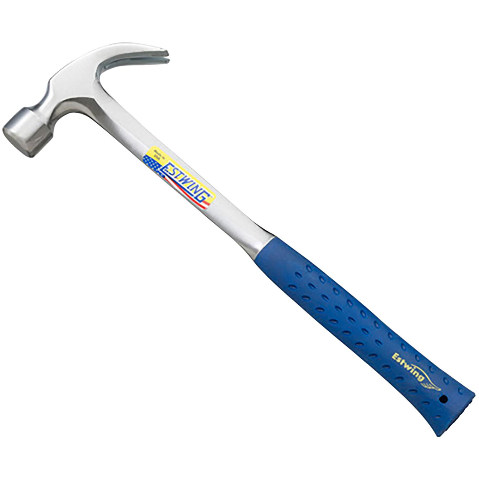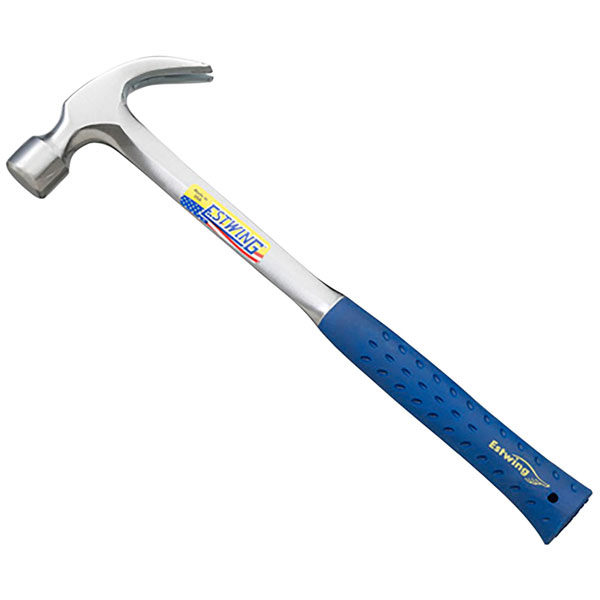 This steel framing hammer from Estwing has a longer handle for increased striking power. The head and handle are forged in one-piece and fully polished. Its curved claw enhances leverage for easily pulling and prying nails or boards. The handle is equipped with a vinyl moulded Estwing Shock Reduction Grip, which enhances comfort and significantly reduces vibration.