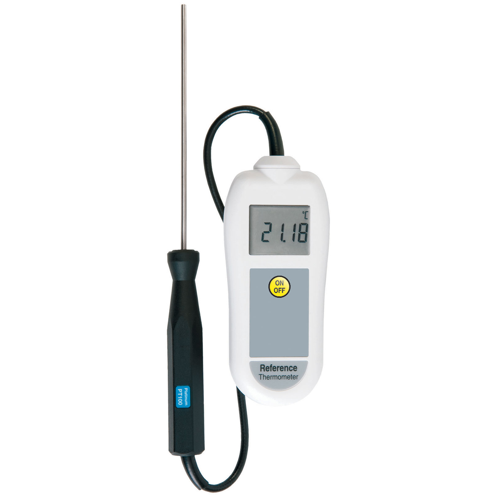 - Supplied with a permanently attached, high accuracy probe incorporating a 1/10th DIN PT100 sensor