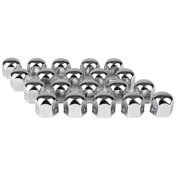 EuFab 15230, 2353696, is a set of 17 mm chrome metal wheel nut covers designed for automotive wheels. This product provides a durable and aesthetically pleasing solution for protecting wheel nuts from environmental exposure and corrosion. Engineered with precision, these covers fit securely over standard 17 mm wheel nuts, enhancing both the longevity and appearance of the nut assemblies. Common applications include usage in passenger vehicles where they function to maintain the performance of the wheel fastening systems by preventing ingress of debris and moisture, thus ensuring continued operational reliability. Engineered to meet rigorous standards, these covers are straightforward to install and contribute to the overall maintenance of vehicle aesthetics and function.