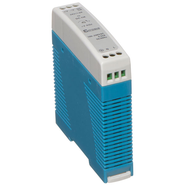 A 20W, 24V DC single output switch mode DIN rail mounting power supply from Europa Components.