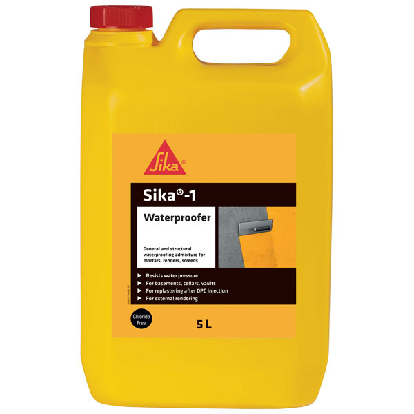Everbuild Sika-1 Waterproofer is an aqueous solution containing complex colloidal silicates. In the presence of water these swell and block the capillaries and pores in the applied sand/cement renders, screeds and mortar to provide an effective barrier against the transmission of liquid water.