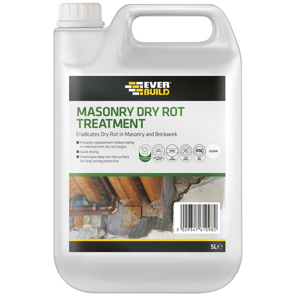 Everbuild Masonry Dry Rot Treatment is a ready-to-use treatment for the eradication of dry rot in masonry and brickwork. The added biocide helps to protect against re-infestation. Micro fine actives penetrate deep into the wood.
