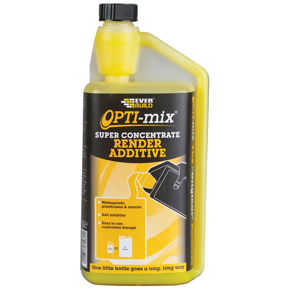 Everbuild Opti-Mix 3-in-1 Render Additive has been designed specifically for use with renders, giving additional waterproofing, plasticising and salt inhibiting capability. Controlled dosage for a consistent mix in an easy to use design with zero waste.