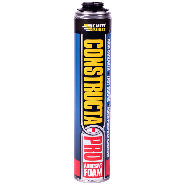 Everbuild Constructa-Pro is a high strength adhesive foam designed for use in a multitude of building applications. It adheres well to most building materials including stone, concrete blocks, brick, wood, plasterboard, insulation board, metal and much more! Once cured, it’s also rot-proof, and moisture and temperature resistant from -40°C to +80°C.