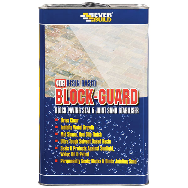 Everbuild 409 Block Guard has a long-lasting acrylic based formula that dries clear. Designed to bind jointing sand and form a durable seal over block paving and other mineral paver/flags. It penetrates deeply into pavers and jointing sand, and then cures by solvent evaporation. Helps facilitate easier cleaning.