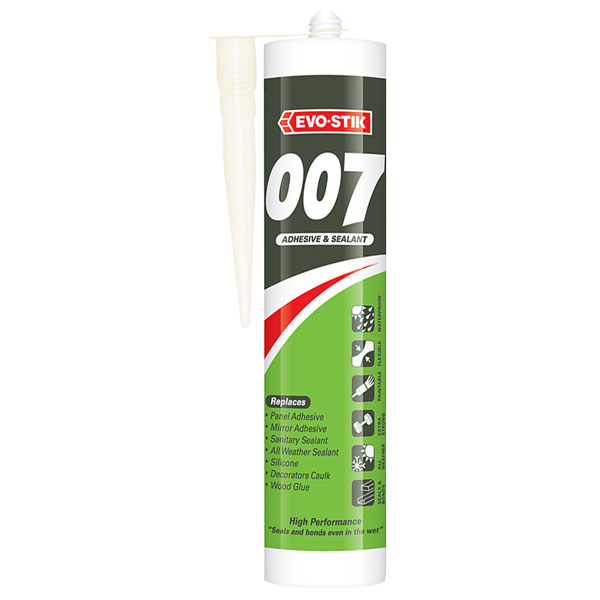 Use this 007 adhesive and sealant from Evo-Stik and you can dispense with a range of other products. This versatile silicone and isocyanate adhesive can be used in a variety of fields including carpentry, decoration, electrics, plumbing and tiling. It is ideal for use on dado rails, window sills, metal, concrete, plaster and stone as well as glazed surfaces.