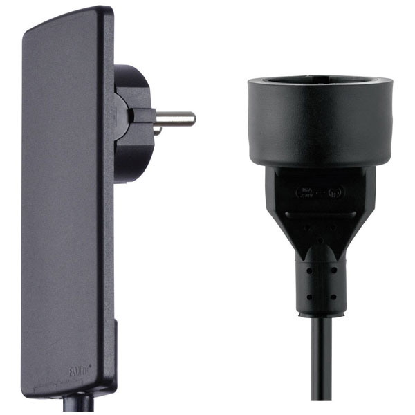 EVOline 151000155100 Cable Extension 16A Black 1.50m Flat Angled Plug