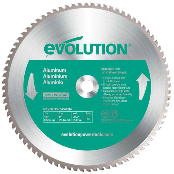 Evolution 80TBLADE14 Aluminium Cutting Chop Saw Blade 355 x 25.4mm x 80T