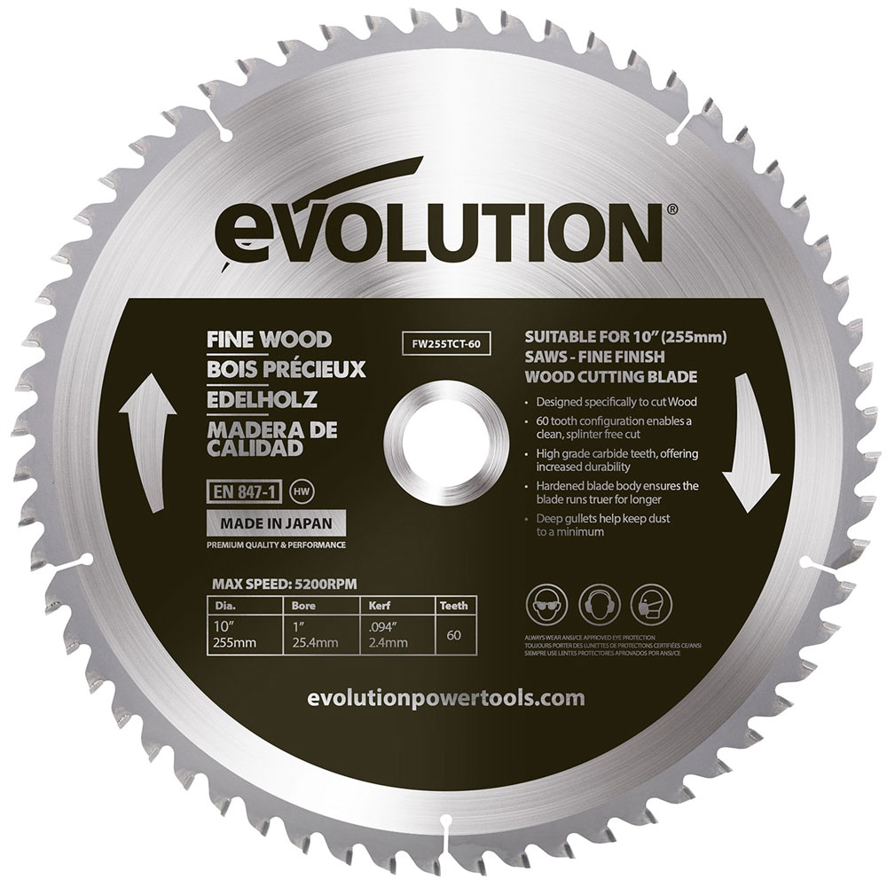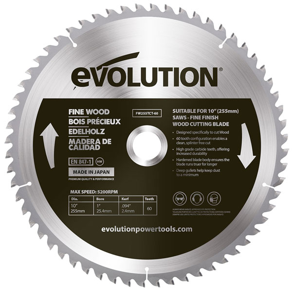 Evolution FW255TCT-60 Fine Wood Mitre/Table Saw Blade 255 x 25.4mm x 60T