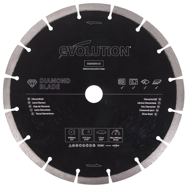 This Evolution General Purpose Diamond Blade is compatible with the R230DCT Concrete Cutting Saw.