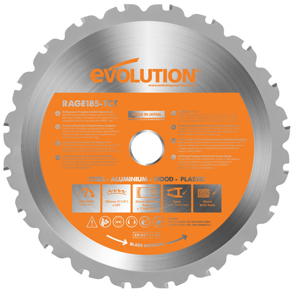 This Evolution Multi-Material Blade has been designed specifically for Evolution 185mm Circular Saws and Chop Saws only. Made from premium materials in Japan. Ideal for the construction professional and for daily use on a construction site. Designed to cut mild steel*, aluminium, plastics and wood, even wood containing embedded nails, with a single blade.