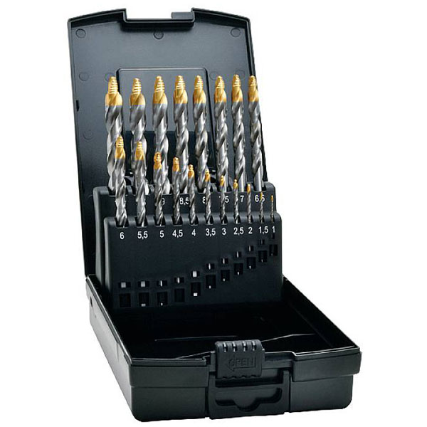 The Exact 74561 HSS TIN-TIP Twist Drill Bit Set includes 19 precision bits designed for enhanced durability. These metal drill bits are suitable for machining tasks, especially in steel and sheet metal applications. Manufactured according to DIN 338 standards, they are ideal for professional use.