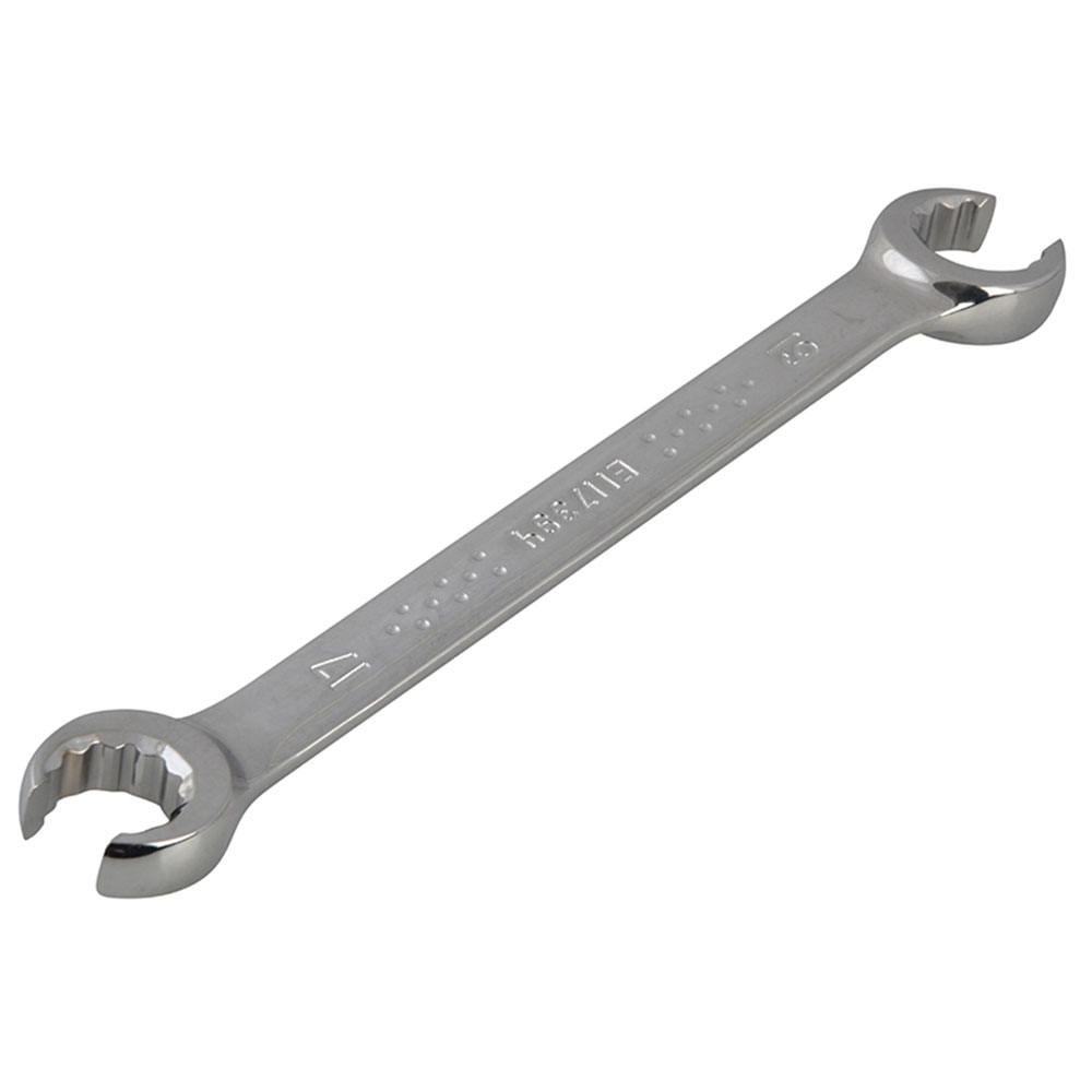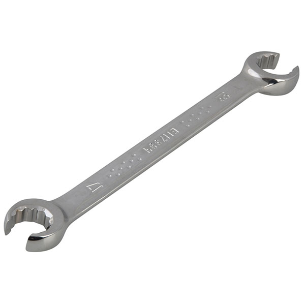 The Britool E112301B flare nut spanners are forged in chrome vanadium steel with a high chrome finish. They have open ends which are angled at 15° from the handle axis for better access.
