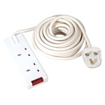 White extension cable intended for office and light duty applications. Fitted with 3pin, 13A plug at one end and two 230V sockets at the other.
